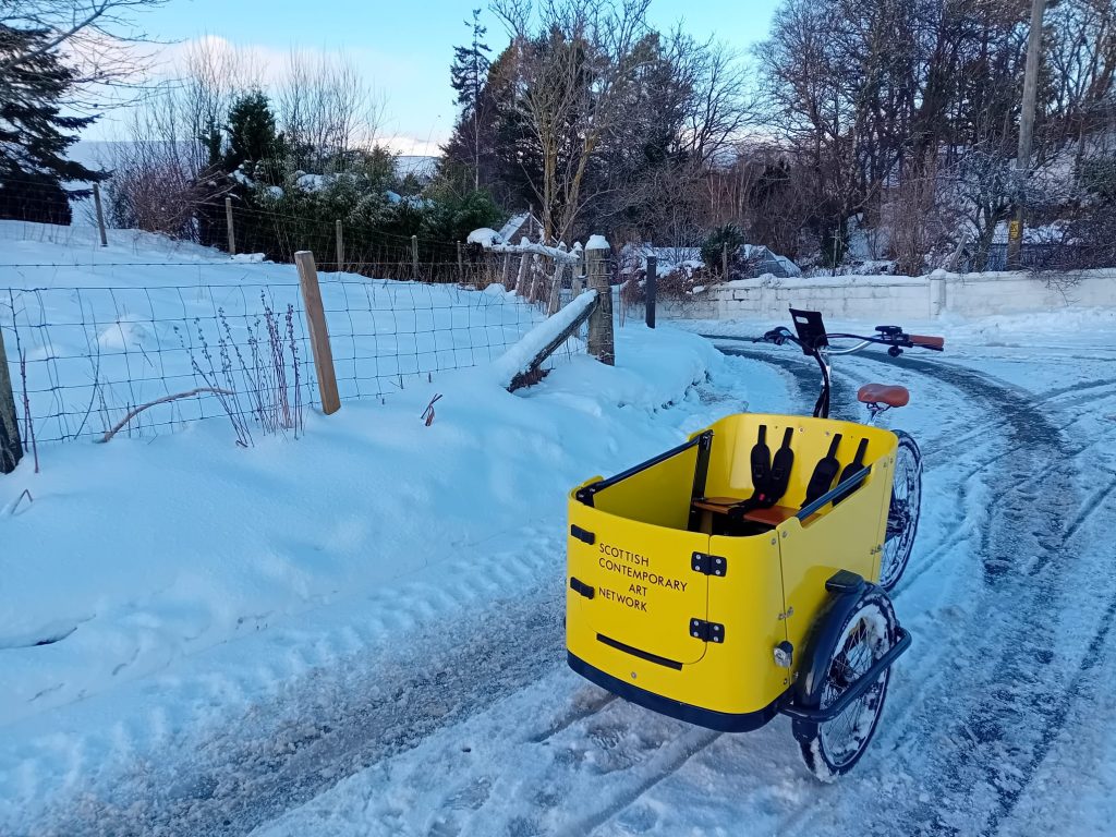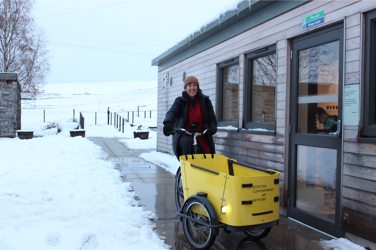 It has been 18 months since Scottish Contemporary Art Network (SCAN) provided us with one of their e-cargo bikes, giving our staff team, artists, and local community an easy, emission-free way to travel and transport items around the village.