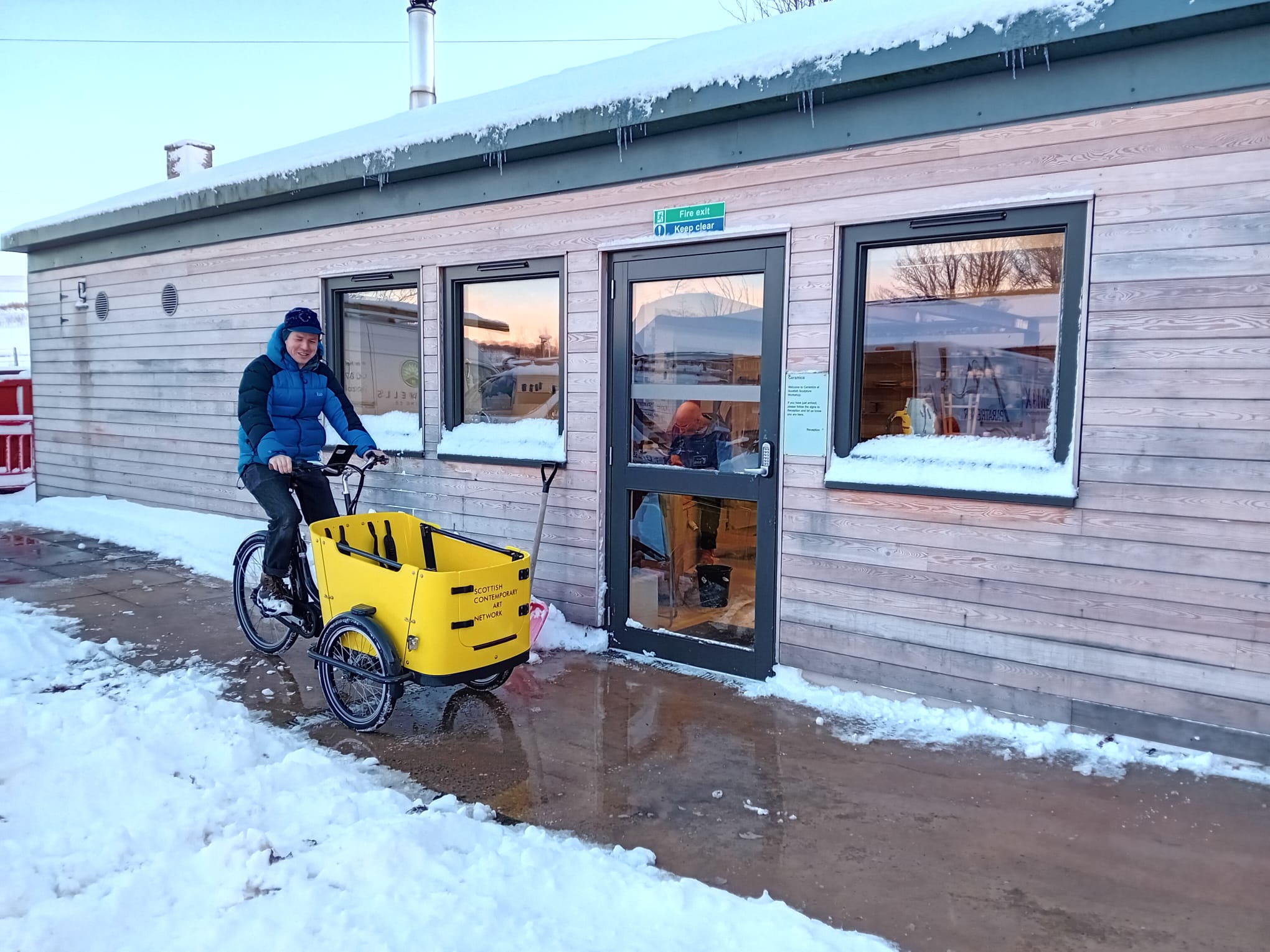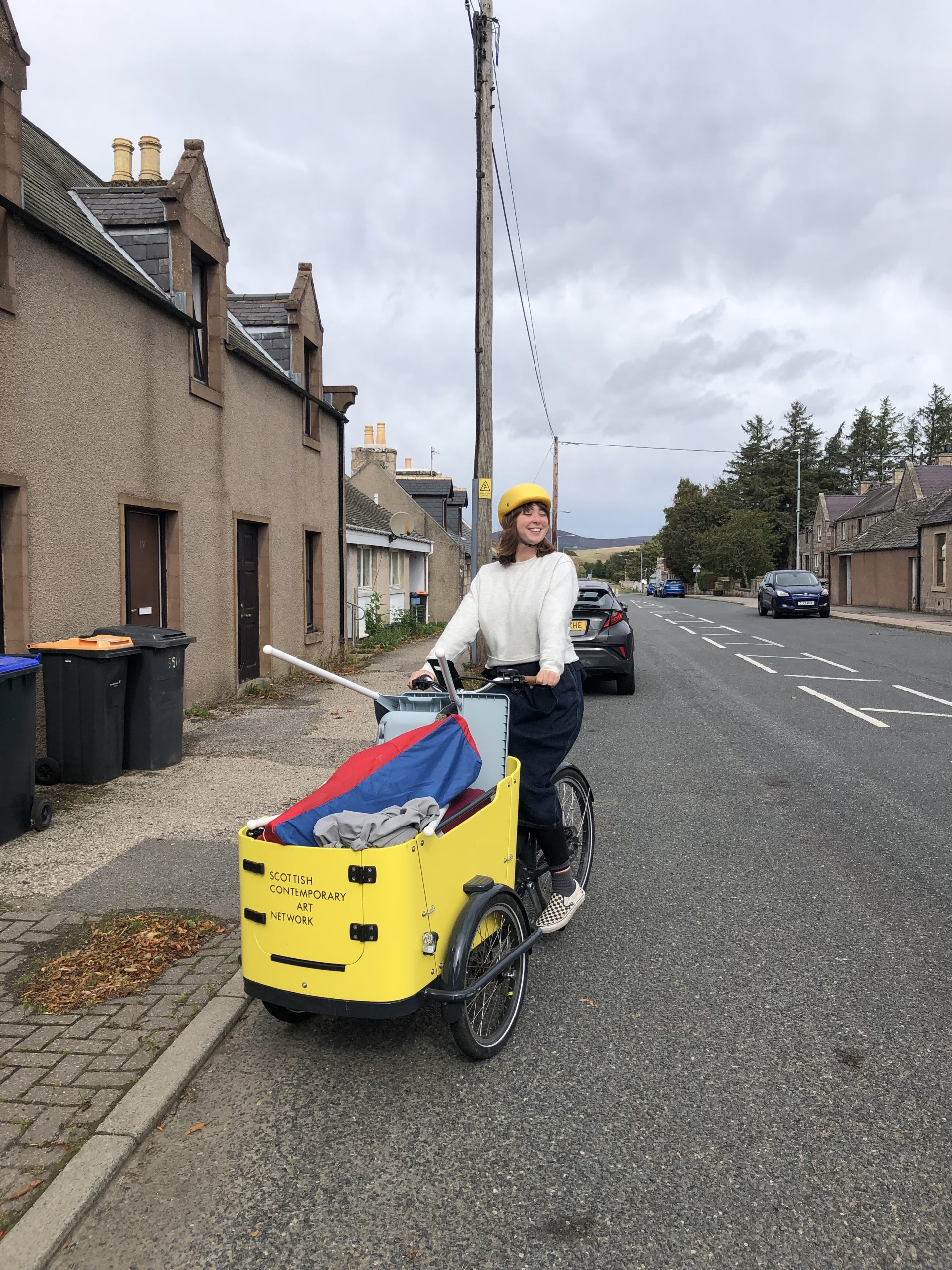 It has been 18 months since Scottish Contemporary Art Network (SCAN) provided us with one of their e-cargo bikes, giving our staff team, artists, and local community an easy, emission-free way to travel and transport items around the village.